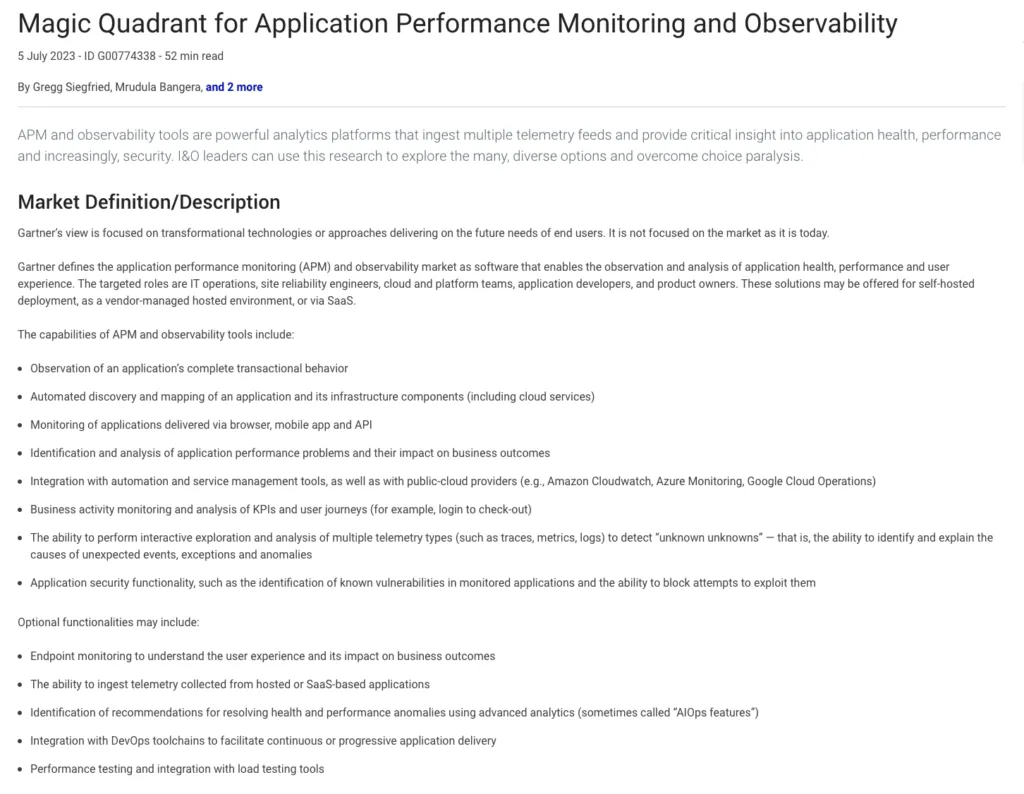Gartner positioned us highest in Ability to Execute and furthest for Completeness of Vision in the 2023 Magic Quadrant for Application Performance Monitoring and Observability.
